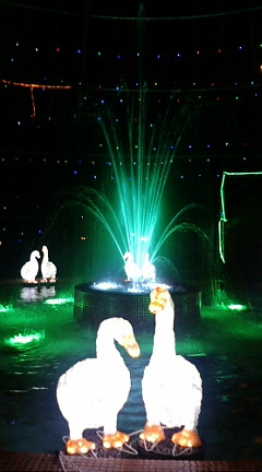 昨日はバイオリンのレッスンでしたが、帰りに強い雨に降られて途方に暮れました。 車から降りて家に戻るまでのわずかな距離、どう考えても楽器のケースが雨に濡れるし。 傘を持って行かなかった自分が一番悪いんですけどもね……? 今月はライトノベル大賞の締め切り月です。 締め切りまであと10日ほどです。投稿する方はもう一息。 封筒を閉じる前に、もう一度応募要項を読んで、改めて作品をチェックしてから提出してくださいね。 ここでミスすると勿体ないから。 写真は、御殿場高原時之栖の『御殿場高原ビール』の前にある噴水。 真ん中の噴水は時間ごとに色が変わります。 他にもイルミネーションが綺麗な箇所があって、携帯カメラでガッシャガッシャ写してました。 そんな中の一枚。 |